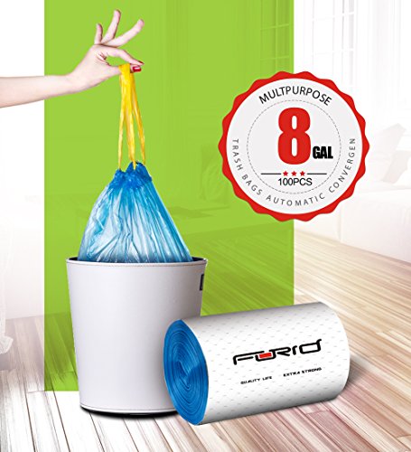 8 Gallon Medium Trash Bags, FORID Quick-Tie Garbage Bag Extra Strong Trash Bags with Drawstring Fit 30 Liters Can Liners for Office Kitchen Bedroom, 8 Gallon garbage bags, 100 Count