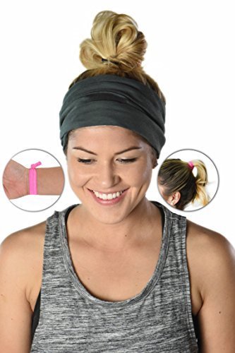 -. Title : Headbands Made From Moisture Wicking Microfiber - PLUS Trendy "Hot Pink" Hair Tie - Men and Womens Sports Headband