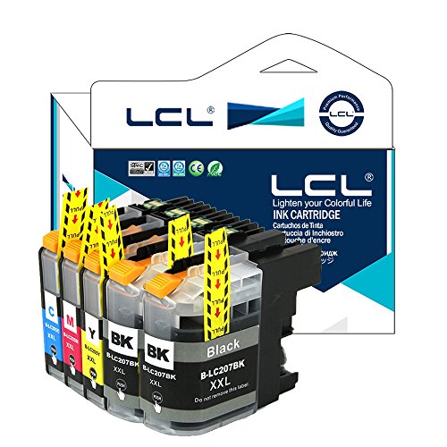 LCL Compatible for Brother LC207 LC205 LC207BK LC205C LC205M LC205Y XXL (5-Pack 2Black Cyan Magenta Yellow) Ink Cartridge for Brother MFC-J4320DW J4420DW J4620DW