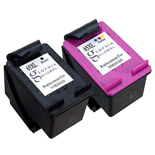 Sophia Global High Yield Remanufactured Ink Cartridge Replacement for HP 65 65XL (Pack of 2: 1 Black, 1 Color)