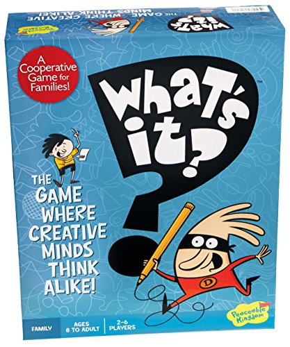 -. Binding : Toy -. Brand : Peaceable Kingdom -. EAN : 0433599293568 -. Feature : What's It? is the award winning game for family game night where creative minds think alike! / Flip a doodle card, flip the timer, and write down your guesses of what the doodle looks like / If you and another player guess alike, everyone wins! / Winner of five awards including Dr. Toy's 10 Best Games Award and Parents' Choice Award / For 2 to 6 players ages 8 years through adult; Peaceable Kingdom packaging is all designed to be frustration free - naturally! -. Genre : Educational -. IsAdultProduct : 0 -. ItemPartNumber : GMF1 -. Label : Peaceable Kingdom -. Manufacturer : Peaceable Kingdom -. Model : GMF1 -. MPN : GMF1 -. PackageQuantity : 1 -. PartNumber : GMF1 -. ProductGroup : Toy -. ProductTypeName : TOYS_AND_GAMES -. Publisher : Peaceable Kingdom -. Studio : Peaceable Kingdom -. Title : Peaceable Kingdom What's It? Award Winning Family Game -. UPC : 885412221911