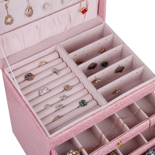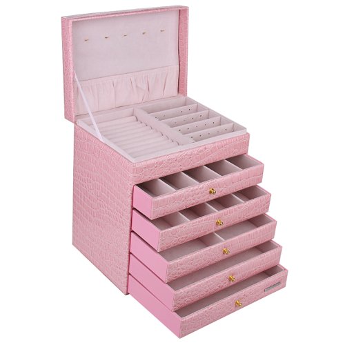 -. Brand : Rowling -. Feature : - Size: approx. 9.5x7x11inch / 25*18*28cm(LxWxH) /5 gold color hooks on top lid for necklace, 1 pouch on the top side. / - First Layer: Half Large compartment for RIngs (11 rolls), the other half for earrings, (20 pairs at least)/- First Drawer: separated into 5 parts. (each slot size: 1.5x6x1.2inch / 5.5x16x3cm) / - Second Drawer: separated into 5 parts. (each slot size: 2x6x1.2inch / 4x16x3cm)/ Third Drawer: separated into 2 parts. (each slot size: 4.3x6x1.2inch / 11x16x3cm) / - Fourth & Fifth Drawer: 1 big empty compartment for bracelets and etc. ( size: 9x6x1.2inch / 23x16x3cm) / - Each Drawer can not be pulled out of The case, with gold colored buckle./with Metal LOGO on The bottom drawer. -. NumberOfItems : 1 -. PackageQuantity : 1 -. ProductGroup : Kitchen -. ProductTypeName : KITCHEN -. Size : 9.5x7x11inch (24.5x17.5x28cm) -. Title : Extra Large Jewelry box Cabinet Armoire Bracelet Necklace Storage Case ZG209