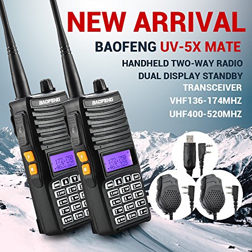 Baofeng 2PCS UV-5X Mate Handheld Two-way radio VHF136-174MHz UHF400-520MHz Dual Display Standby Transceiver Walkie Talkie with 2xMic+Tokmate Programming Cable