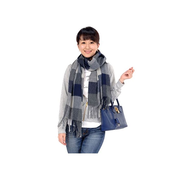 Hayashiguchi [MONCADA]몽 카 다 양털 울100% 체크 무늬 대형 스톨 60cm폭 WS0022