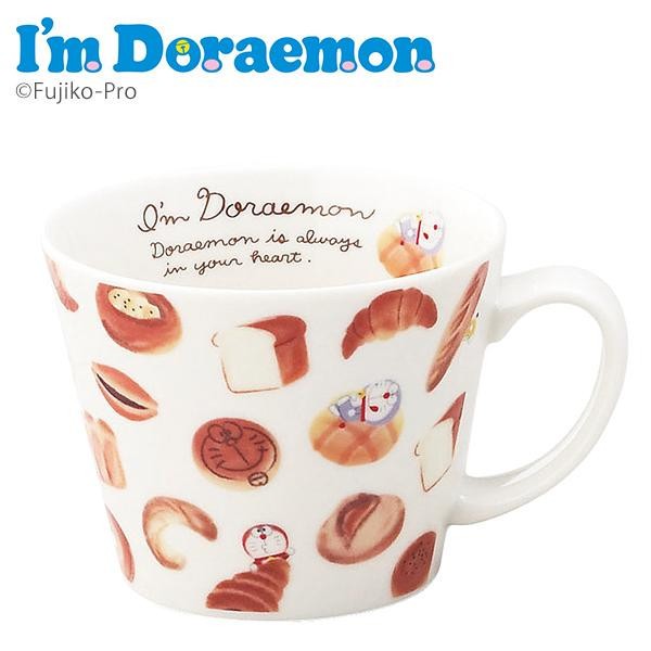 ドラえもんたちとたくさんの暗記パンが描かれた、やさしい色合いのスープマグ。ギフトにもオススメです。