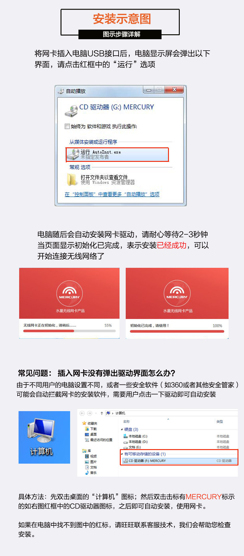 店铺还有需要安装驱动的网卡版本,以下是驱动版网卡的介绍,驱动版内含驱动光盘一张,需要下载安装驱动以后才能使用,请联系客服购买