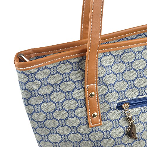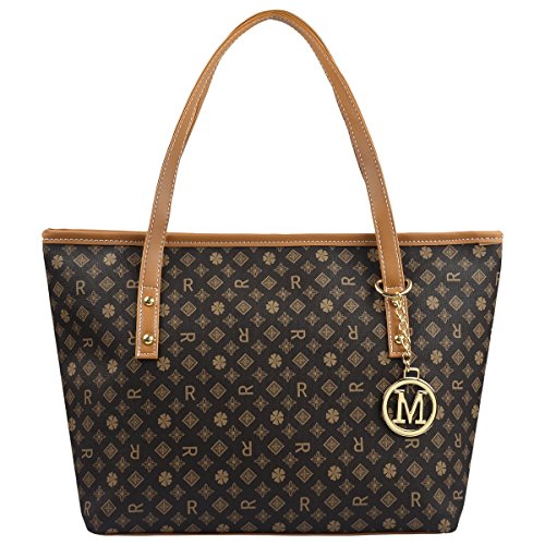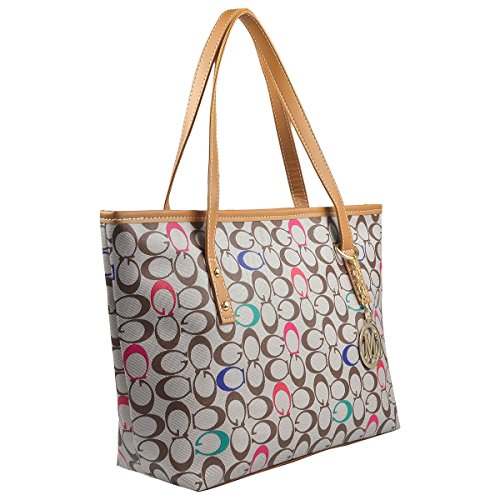 -. Title : Micom Casual Signature Printing Pu Leather Tote Shoulder Handbag with Metal Decoration for Women