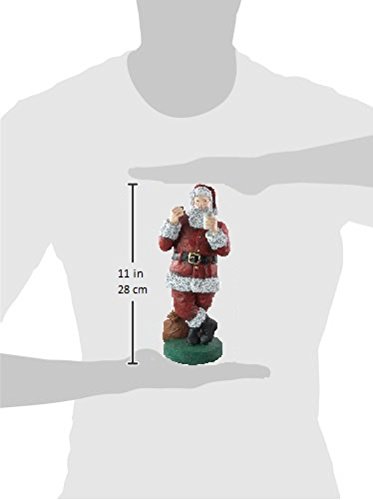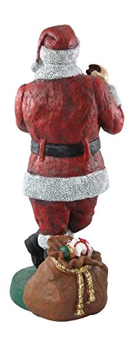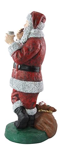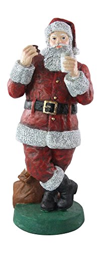 Christmas Santa Claus 11" Statue Enjoying Milk and Cookies Standing by Sack of Presents Hand Painted Resin