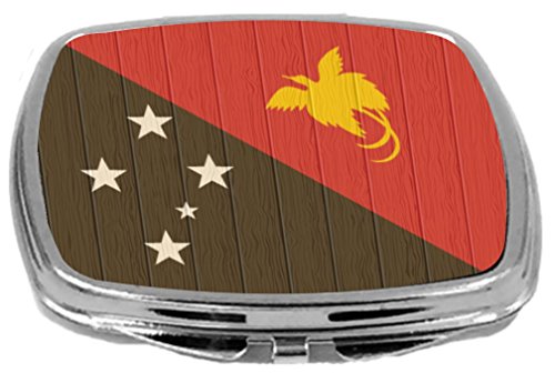 Rikki Knight Compact Mirror on Distressed Wood Design, Papua New Guinea Flag, 3 Ounce