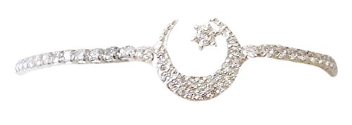Simulated White Diamonds in Star and Moon Design Chain Link Ankle Bracelet. Can be worn as an anklet or bracelet.
