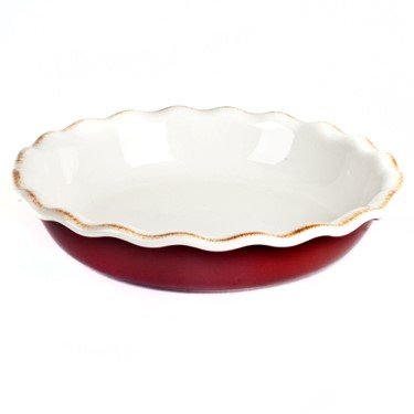 Baking in Stoneware, your delicious Culinary Creations can go Oven to Table with style. 9" in diameter and a beautiful Red color, your pies will be a Hit even before you cut them.