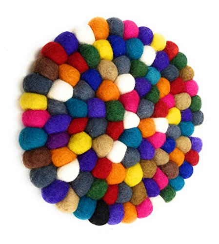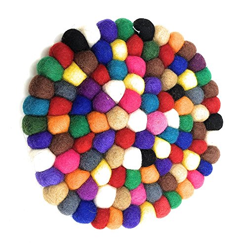 Handmade by women in Nepal where the tradition of felt-making dates back centuries, each ball is individually hand-felted and then stitched together to make a Colorful Hot Plate. Great for serving to table.