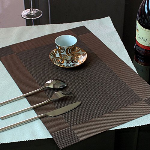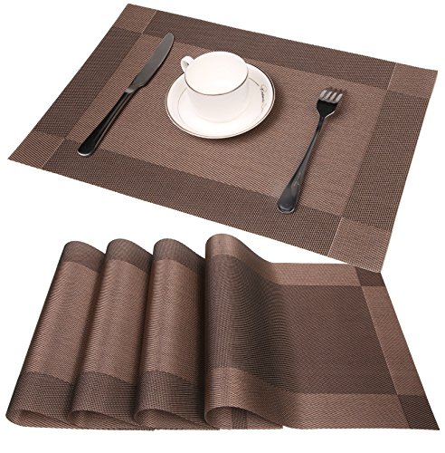 Material:These PVC Place Mats are made of 70% PVC and 30% polyester yarn,which makes this place mats sets are co-friendly and safe for dinner table use
