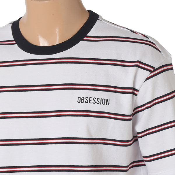 오버핏 자수 레터링 스트라이프 티셔츠입니다. 블랙컬러만 중앙 레터링 화이트, 스카이블루는 왼쪽가슴 레터링입니다. | |