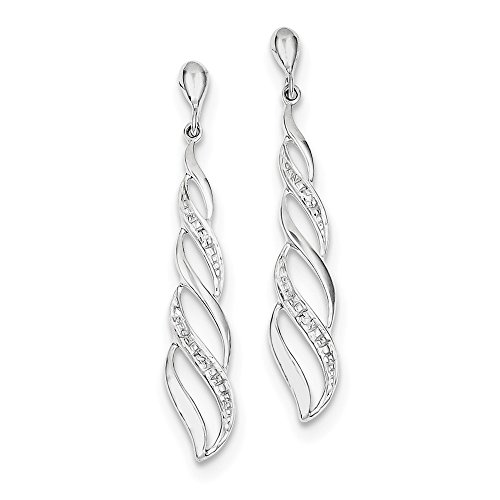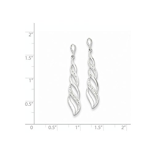 Sterling Silver Diamond Swirl Post Dangle Earrings (7mm x 39mm)