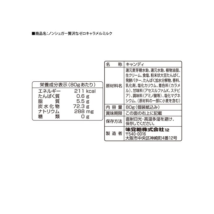 원본상품명: 味糖 ノンシュガ贅なゼロキャラメルミルク 味 80G×6袋