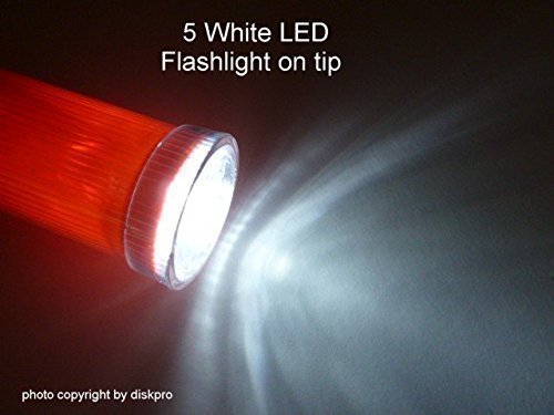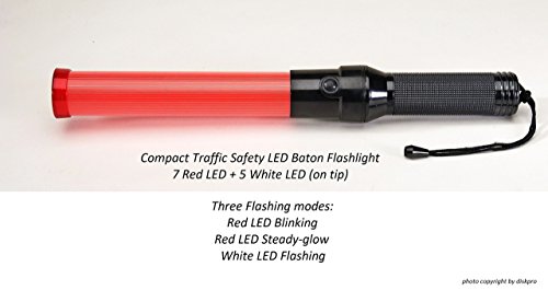 16.5 inch Red LED Traffic Safety Wand with Flashlight. Featured 7 Red LED in 2 Flashing modes (Blinking & Steady-glow) plus 5 white LED on tip as Flashlight, uses 2 D-size batteries (Not included)