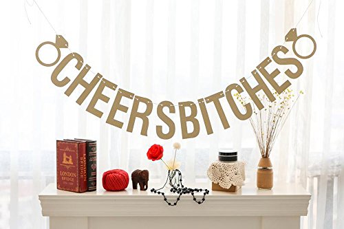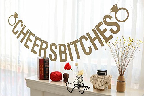 -. Title : Fecedy Glittery Gold CHEERS BITCHES Letters And Ring Banner for Wedding Party Decoration