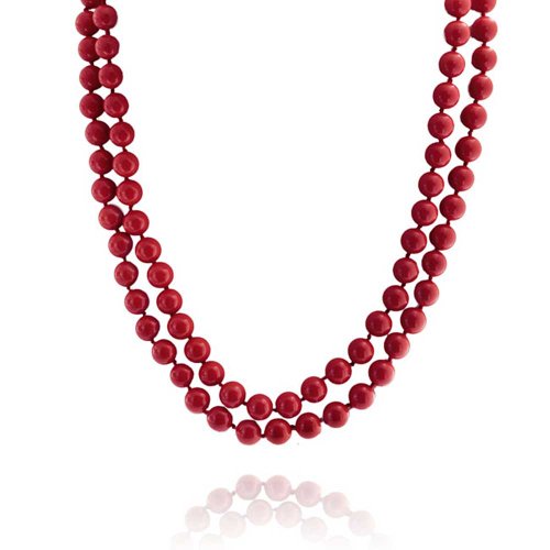 Simulated Pearl jewelry is timeless and makes a great gift for mom. The classic layered look of a red Simulated Pearl necklace makes it the perfect piece of mothers day jewlery. At 64 inches in length, our Red Simulated Coral jewelry is one of our most versatile endless Simulated Pearl necklaces. She can wrap it once, twice or even three times for a different look every time, or even wear it long and knotted on the bottom.