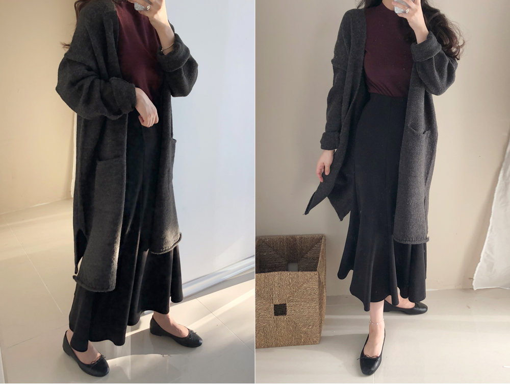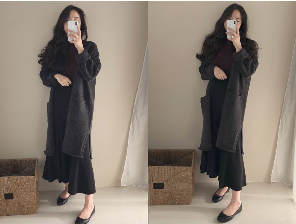 롱한 기장감에 자연스럽게 촤르륵 떨어지는 플레어 라인으로