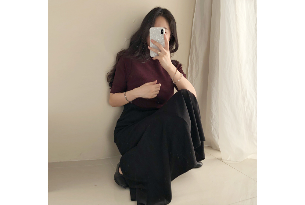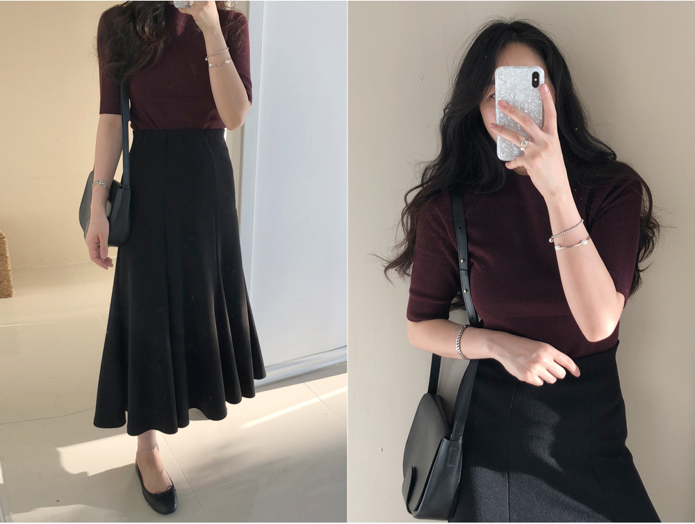 앞,뒤 길게 절개선이있어 다리가 길어보이고 날씬해 보이는 핏으로 자꾸 입고싶은 스커트에요