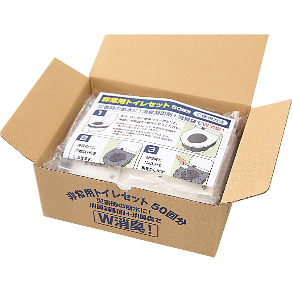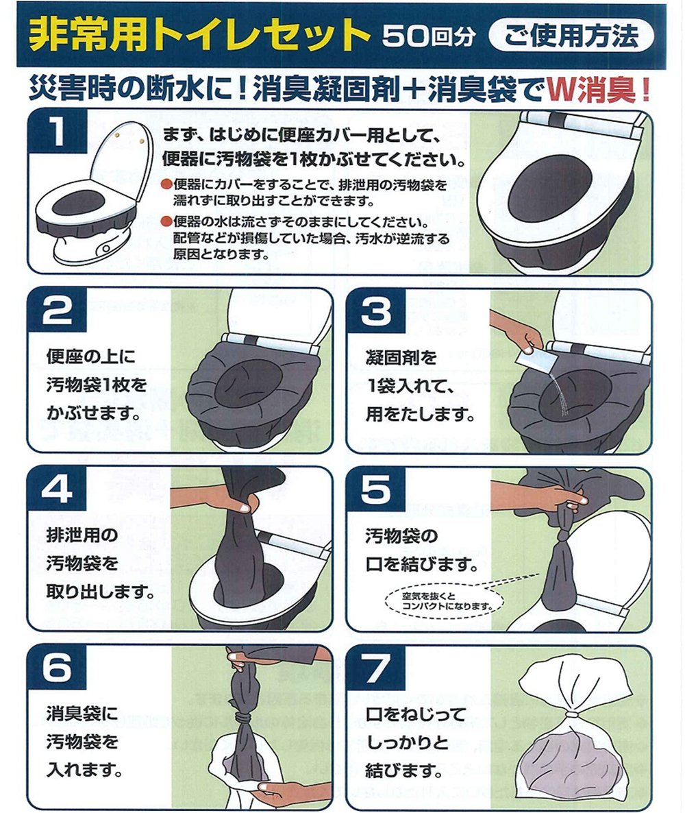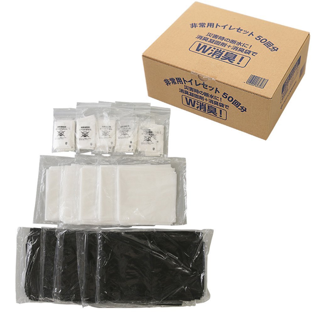 It is a set of deodorant bag and coagulant for toilet that can be used even in case of disaster.