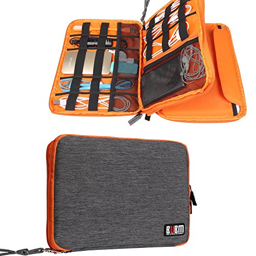 Travel Organizer, BUBM Universal Double Layer Travel Gear Organizer Storage Bag / Electronics Accessories Organizer / USB Cable Organizer Bag - Grey and Orange