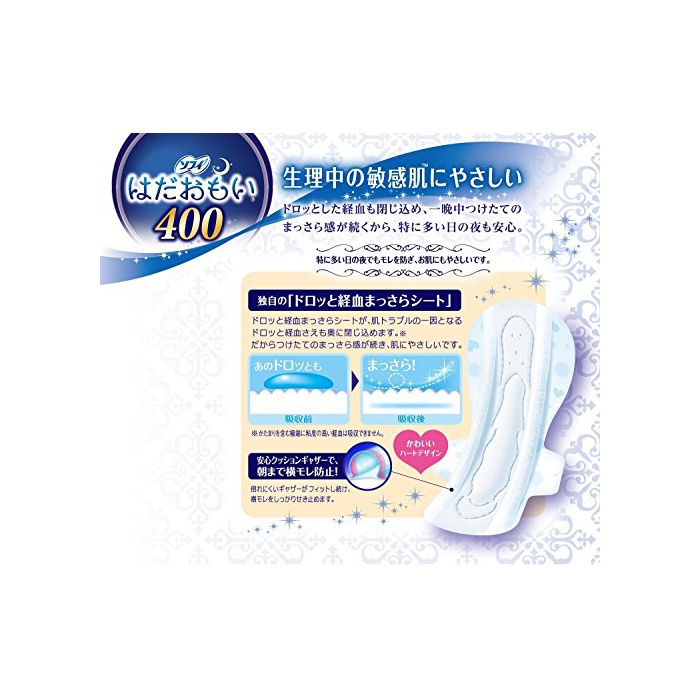 원본상품명: ソフィ はだおもい 400 特に多い日の夜用 羽つき 8コ入