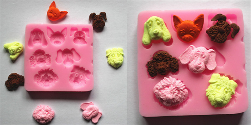 Food-Grade 3D Mini 7-design Dog Heads Shape Silicone Fondant/Cookie/Chocolate Mould Newest Dog Heads Cake Decorating Mould