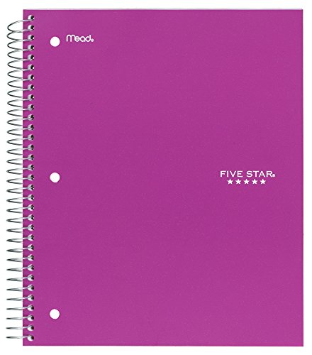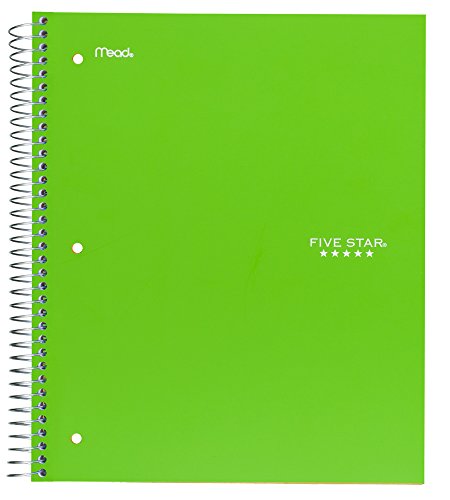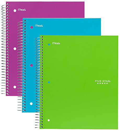Five Star Spiral Notebook, 1 Subject, 100 Wide Ruled Sheets, Teal, Lime, Berry Pink/Purple, 3 PACK (73057)