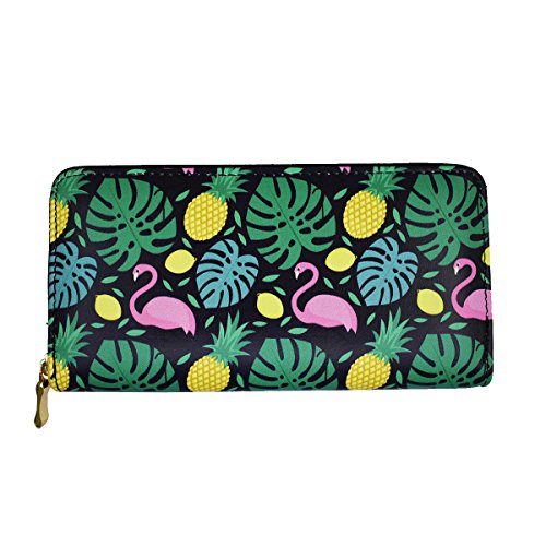 -. Title : Women's Flamingo Elements Printed Purse Wallet, PU Leather Card Holder Handbag Clutch