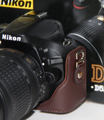 -. Title : MegaGear "Ever Ready" Brown Leather Camera Case for New Nikon D5200 Cameras with 18-55mm VR Lens