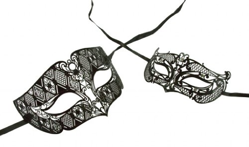 -. Brand : Kayso -. Department : womens -. Feature : Kayso Inc's Signature laser cut masks are made with light weight eco-friendly metal alloy. / Decorated with Czech Preciosa rhinestones. / No flaking of paint, no messy excess glue residue, and no discoloration. / One size fits most. Mask can be hand adjusted for a better fit. / Worn with satin ribbons attached to sides of the mask. -. ProductGroup : Apparel -. ProductTypeName : ADULT_COSTUME -. Title : Kayso Inc Love Collection Couples Venetian Laser Cut Masquerade Mask Set