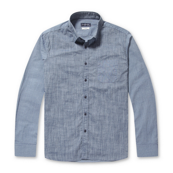 - 스트라이프와 체크 패턴을 믹스한 남성 셔츠.