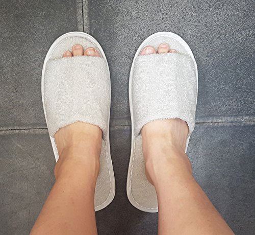 (CleanBay)/Nail Tools/Spa Slippers/DIRECT FROM USA/2 Pairs Open Toe Towel Terry Cotton Cloth Slippers Adults Unisex Indoor Slippers (Grey)