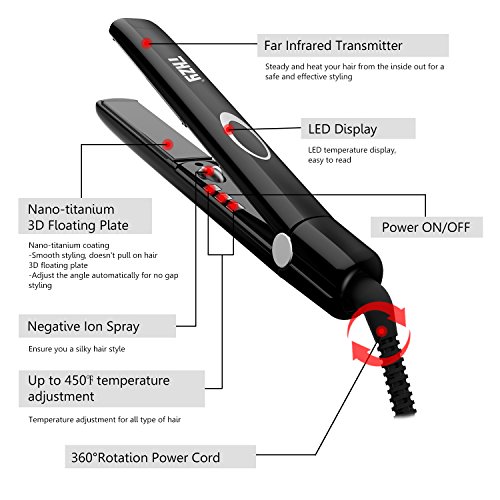 Wide & Floating Titanium Plates : This flat iron are build with 1 inch wide, titanium coating and 3D floating plates, ensure no gap while styling and offer a steady heat.