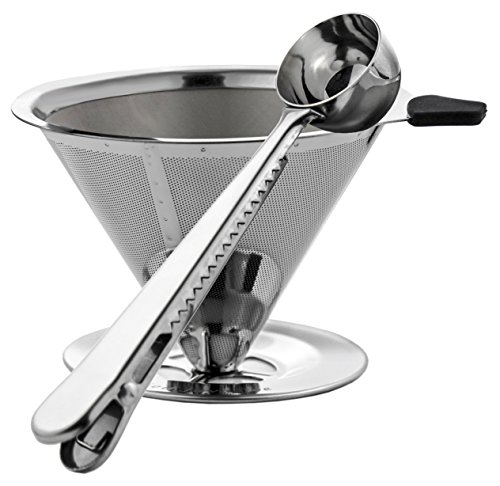 Wicked Java Joe 2 Cup Pour Over Coffee Dripper Makes Amazing Barista Quality Brew. Paperless, Reusable High Grade Stainless Steel Coffee Filter w/ Bonus Coffee Scoop & Bag Clip - 3 Kitchen Cool Colors