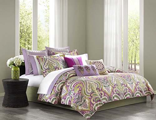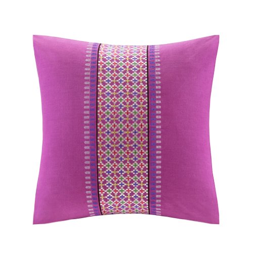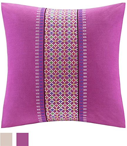 The Echo Vineyard Paisley cotton faux linen 18x18" decorative pillow features a bold fuchsia color with multi-colored embroidery down the center for a pop of color to the center of this collection.Feature