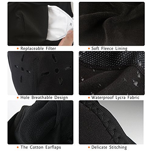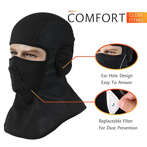 The Balaclava Crafted with premium soft fleece lining and waterproof lycra fabric to ensure optimal comfort and protection against harsh weather conditions. It is environmentally friendly and comfortable, and feels fluffy and soft. There will be no peculiar smell.This windproof face mask shows great warmth retention property. It will protect your head, face and neck in winter or any other cold weather. Perfect for winter sports like Motorcycling, Biking, Skiing, Hiking, Skydiving, Running, Hunting, Camping, Fishing, Snow Machining,Trekking,etc. Please try to use neutral detergent and wash at normal temperature. Wash with dipping. In order to avoid staining, please wash separately. Make it hang dry, do not expose to sun. Material: Lycra Fabric Fleece Lining? Color: Black Model: Single pack(including 1 piece activated carbon filter) Size: One size fits all. (Men and Women)? Application: Motorcycling, Biking, Skiing, Snowboarding, Hiking, Skydiving, Running, Hunting, Camping, Fishing, Paintballing ,Snow Machining,Trekking and other sports activities.? Our Promise to You: If there is any problems in our products, please feel free to contact us before leaving negative feedback. We will do everything to make you 100% happy. 0 |