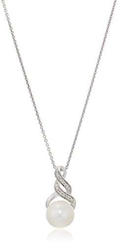 2 Piece Box Set of Pendant and Earring with Cultured Pearl and diamond in Sterling Silver