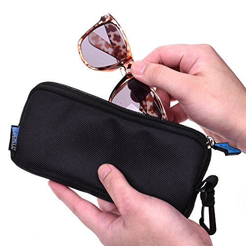 BCP Black Color Splash Proof Nylon Sunglasses Eyeglasses Safety Pouch Case Bag Holder with Carabiner Clip
