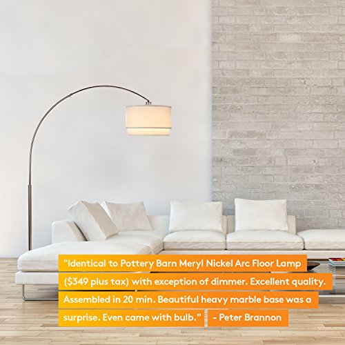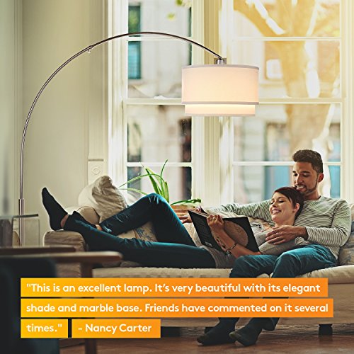 - VERSATILE MODERN ARCH LAMP, HEAVY MARBLE BASE- The Mason LED Floor Lamp works well with a variety of interior design styles such as urban, traditional etc. It's beautiful, heavy marble base ensures it stands solid even if knocked. Add elegance to your home or office with its hanging double lamp shade and curved pole. It will look great in your living room, bedroom, den, office, game room, nursery, dorm, or any other room.