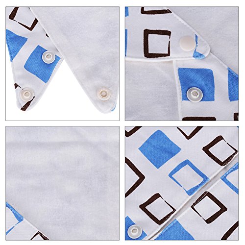 Material: 100% cotton, lovely color Warm tips: hand wash Dimensions (side length) : 17.32x 12.2x12.2 inch (triangle) Recommended for age groups 1 to 36 months baby Colors: 7 Sets of different cute prints Easy to adjust with two snaps, Adjustable in size