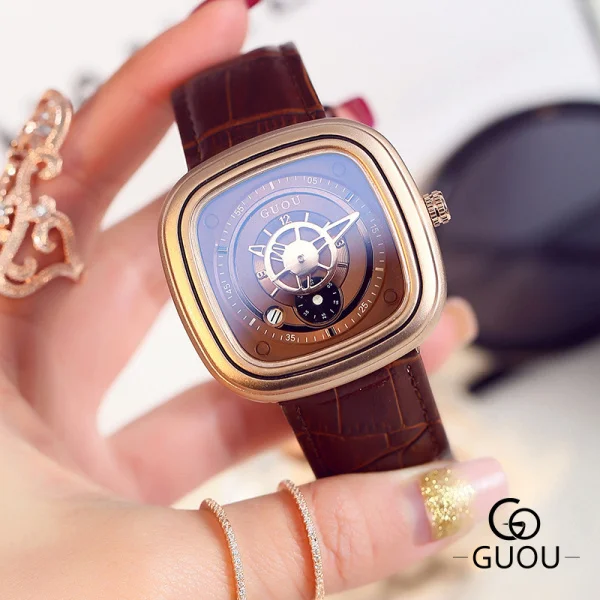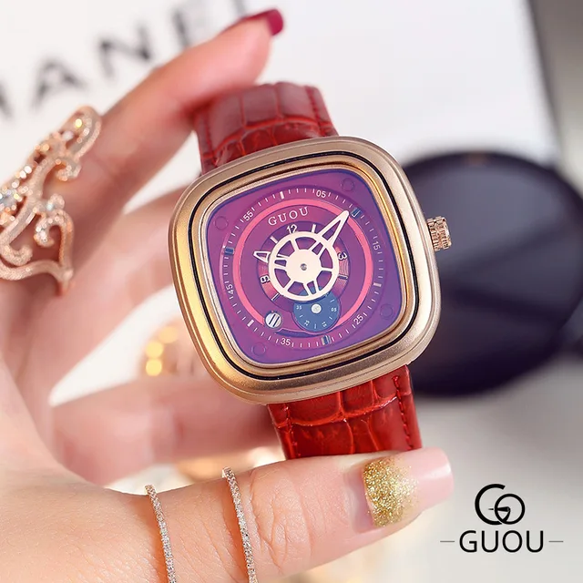 | [해외] GUOU 브랜드 고급 석영 시계 여성 가죽 손목 팔찌 시계 여성 손목 시계 saat hodinky relojes mujer montre 팜므 |