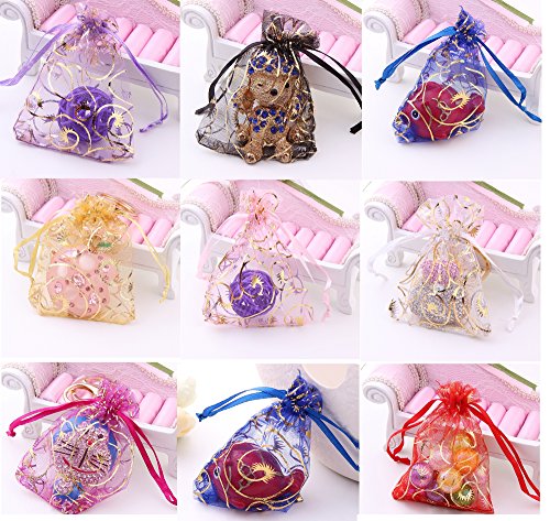Wuligirl 100 PCS 2.75 by 3.54 inches Mixed Color Eyelash Organza Small Sheer Mesh Gift Bags with Drawstring edding Party Bags Candy Bags Jewelry Bags (100 pcs Mix Eyelash, 2.75x3.54")