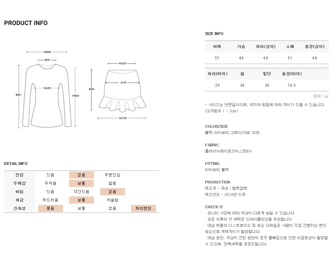 피팅한 제품의 컬러는 아이보리,블랙 이며