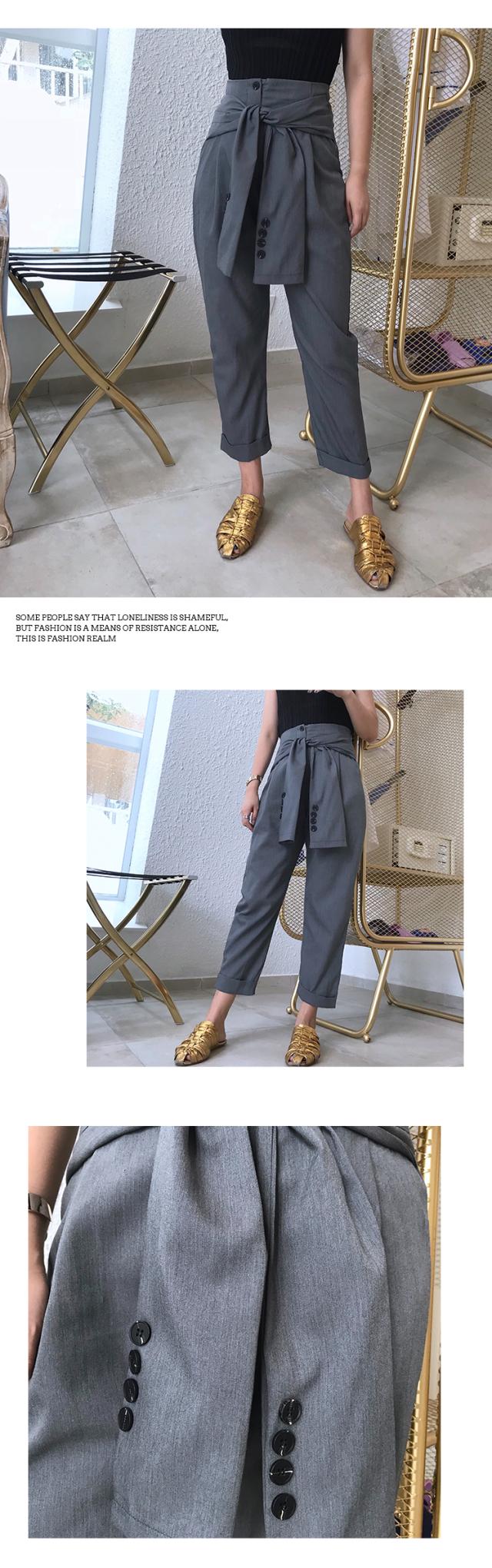 おしゃれ感たっぷりの9分丈ハーレムパンツ。ウエストがスリーブのようになっておしゃれ感をアップ!