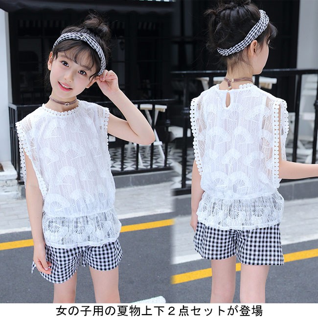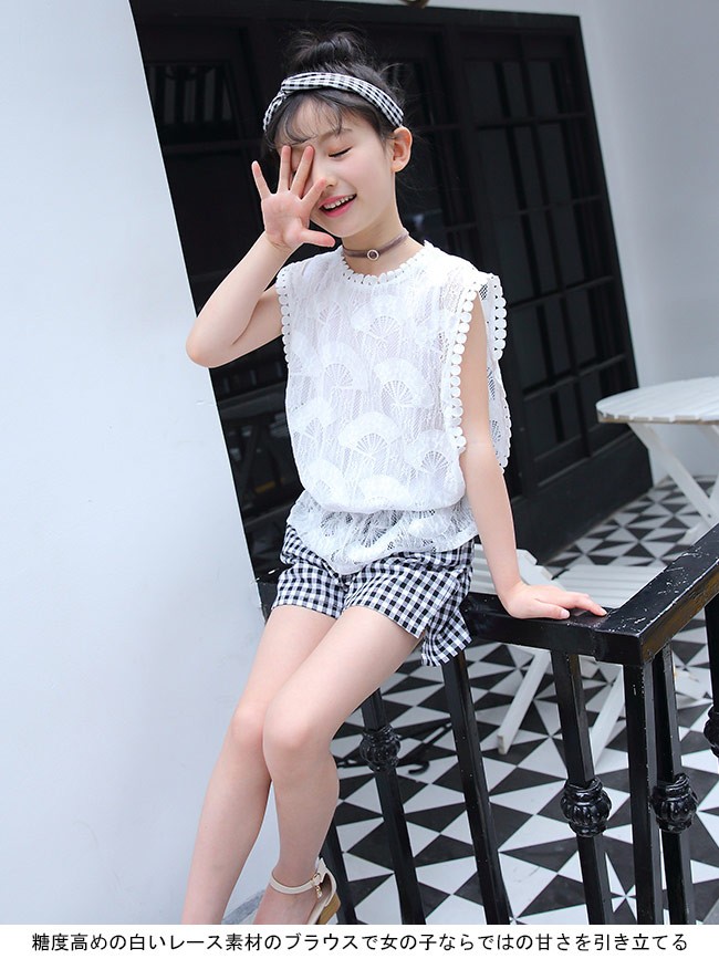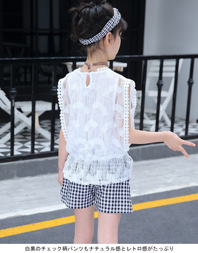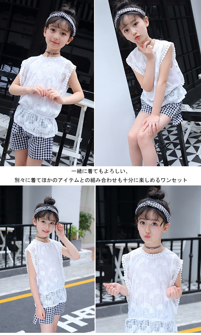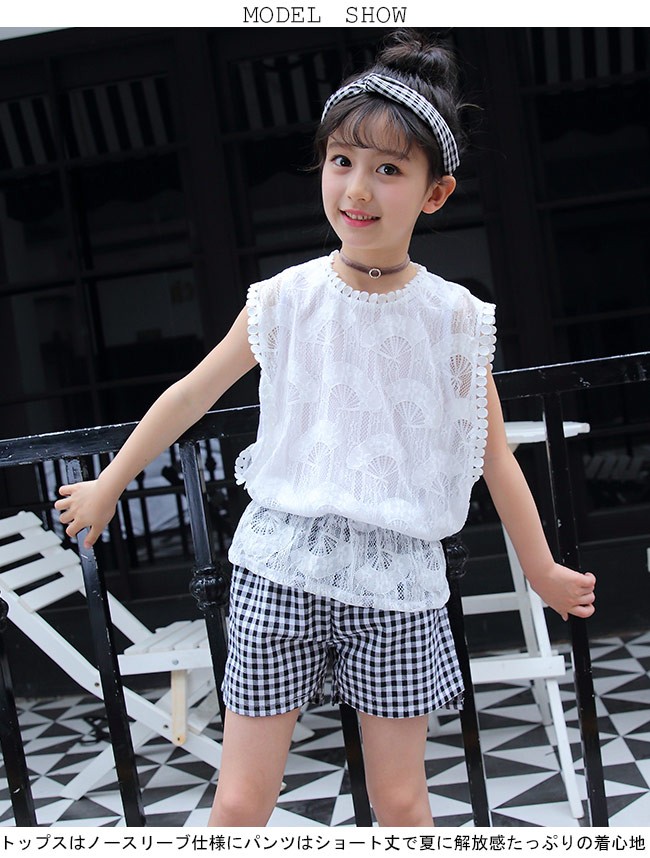 子供服 2点セット 女の子 レースブラウス ノースリーブ 女児 ショートパンツ ウエストゴム チェック柄 夏物 セットアップ レトロ タンクトップ女の子用の夏物上下2点セットが登場トップスはノースリーブ仕様にパンツはショート丈で夏に解放感たっぷりの着心地糖度高めの白いレース素材のブラウスで女の子ならではの甘さを引き立てる程良い透明感と背中ボタンのデザインでとても優雅な雰囲気を醸し出す白黒のチェック柄パンツもナチュラル感とレトロ感がたっぷりカラー:写真色素材 ポリエステルサイズ(cm) 120 130 140 150 160120 トップス 着丈49 バスト66 パンツ 総丈30 ヒップ76130 トップス 着丈52 バスト70 パンツ 総丈30 ヒップ80140 トップス 着丈55 バスト74 パンツ 総丈32 ヒップ84150 トップス 着丈58 バスト78 パンツ 総丈33 ヒップ88160 トップス 着丈61 バスト82 パンツ 総丈34 ヒップ92ご注意:※サイズは平置きサイズです。素人採寸ですので、若干の誤差がございます、ご了承ください。