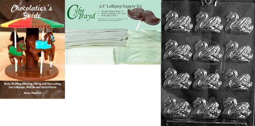 Cybrtrayd Small B/S Swans Wedding Chocolate Candy Mold with Chocolatier's Bundle, Includes 50 Cello Bags, 50 White Twist Ties and Chocolatier's Guide