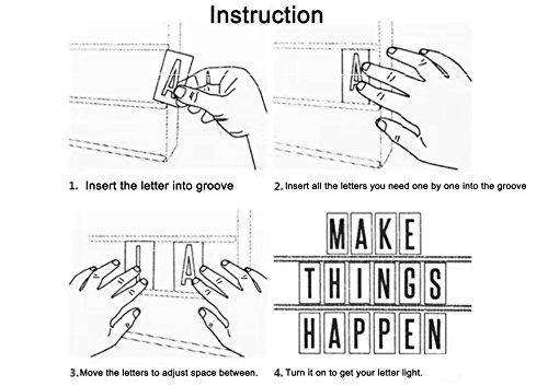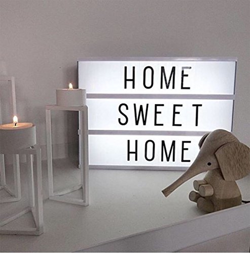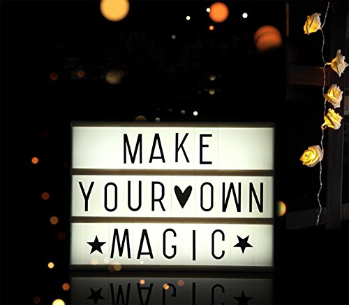 Feature 1.Fantastic LED cinema light box with 96 free combination letters,numbers and symbols 2.Table or wall mounting option 3.MAKE YOUR OWN MAGIC If you're a fan of high-octane movie action, a horror lover, a comedy aficionado or someone who enjoys indulging in some sweet on-screen romance, you can display your passion in style with this cool Cinema Light Box in your home! Widely Perfect for Many Occasions: ?Festivals: New Year,Valentines,Mother's Day, Father's Day,Halloween,Thanksgiving,Christmas, etc. ?Home Decoration: Parties,Birthday,Anniversary,Wedding,Creativemessages,Loveinteraction,Simpleblessing,Inspirational mottoes to express your happy mood. ?Elegant Environment: Store,Restaurant,Bar,Coffee,Cafeteria,providing your customers a warm welcome.